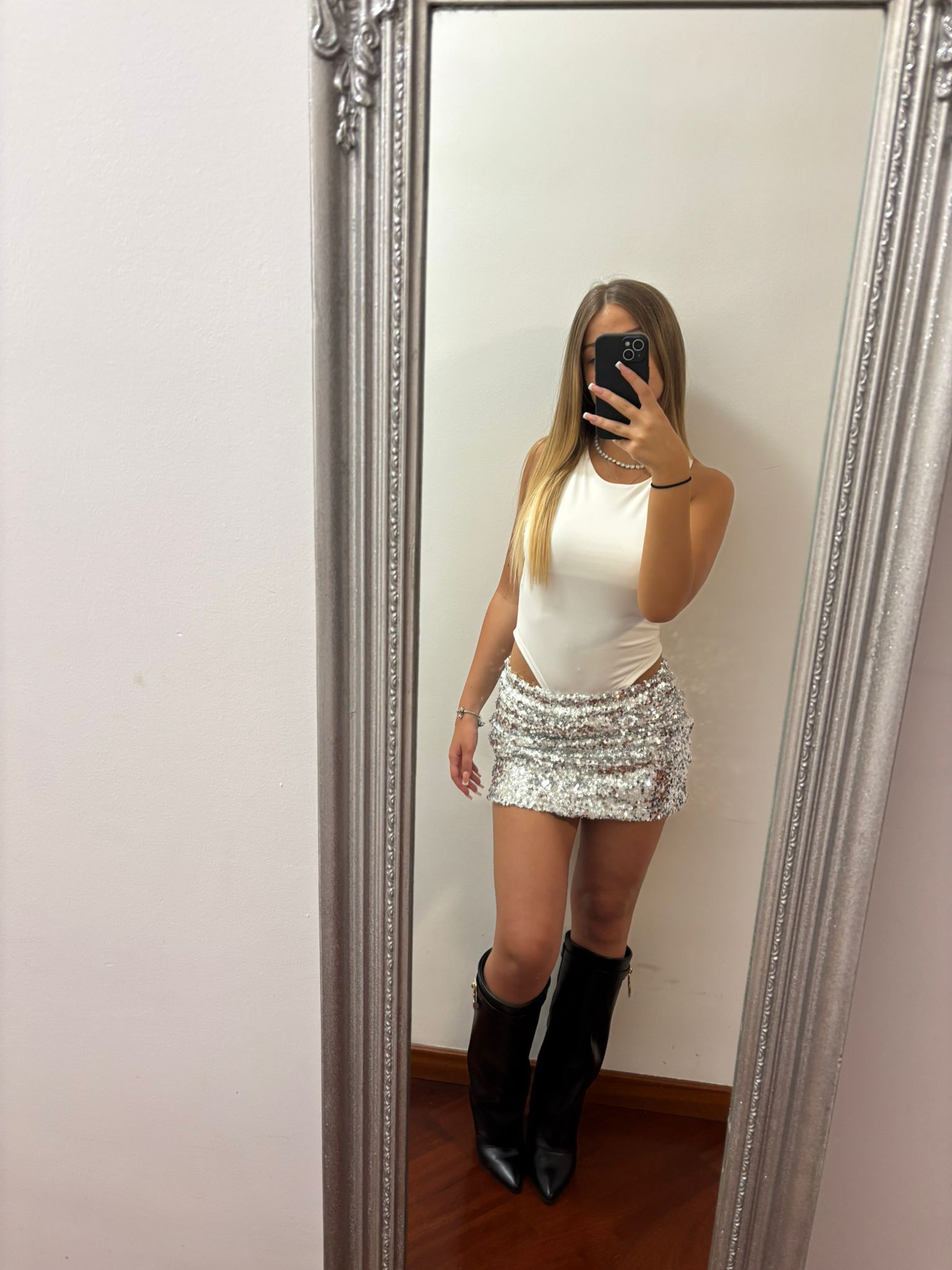 Body bianco elasticizzato.Taglia unica Vestibilita S/M