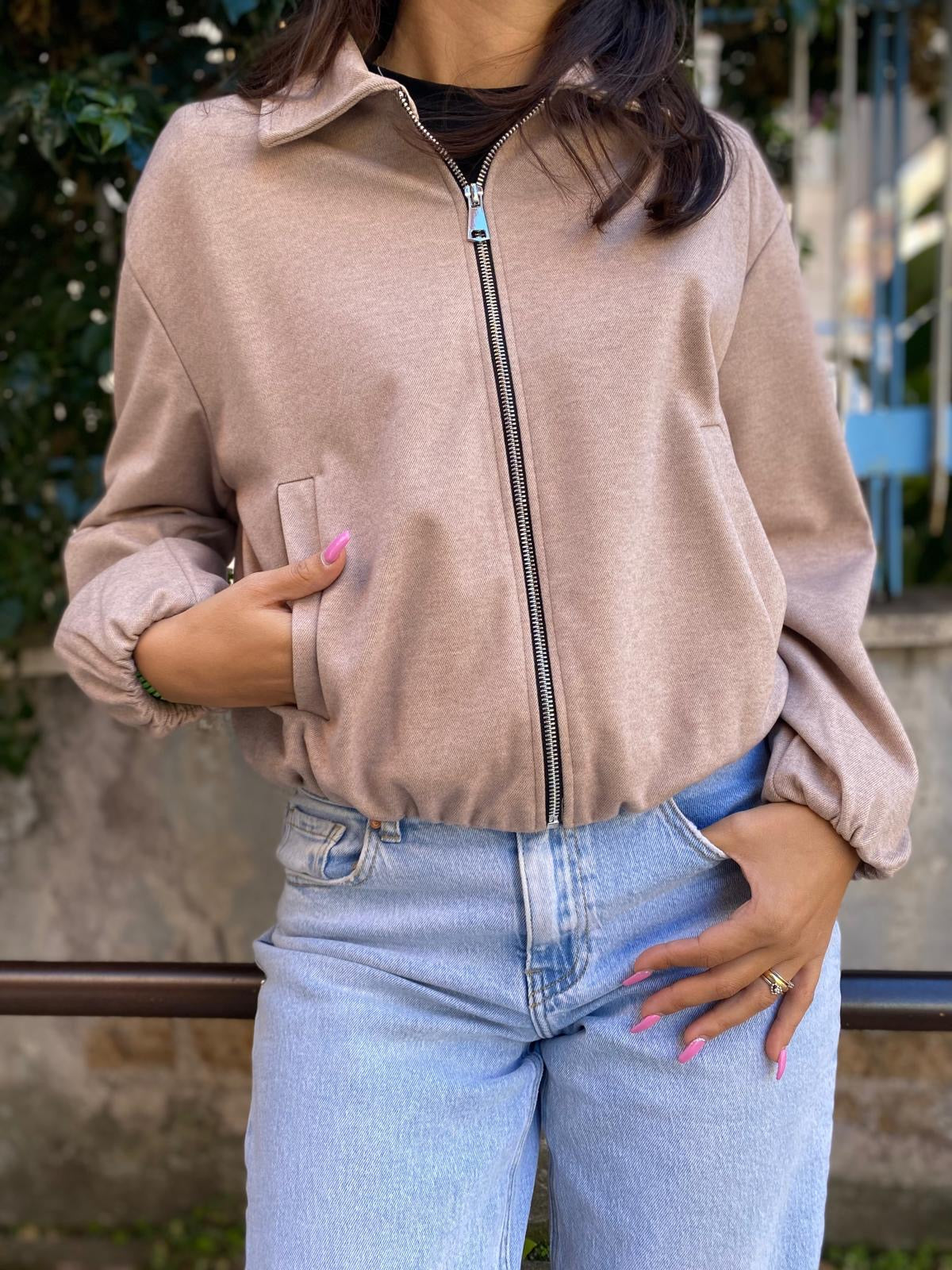 Bomber in panno foderato beige taglia unica. Prima foto beige , seconda tortora e terza marrone