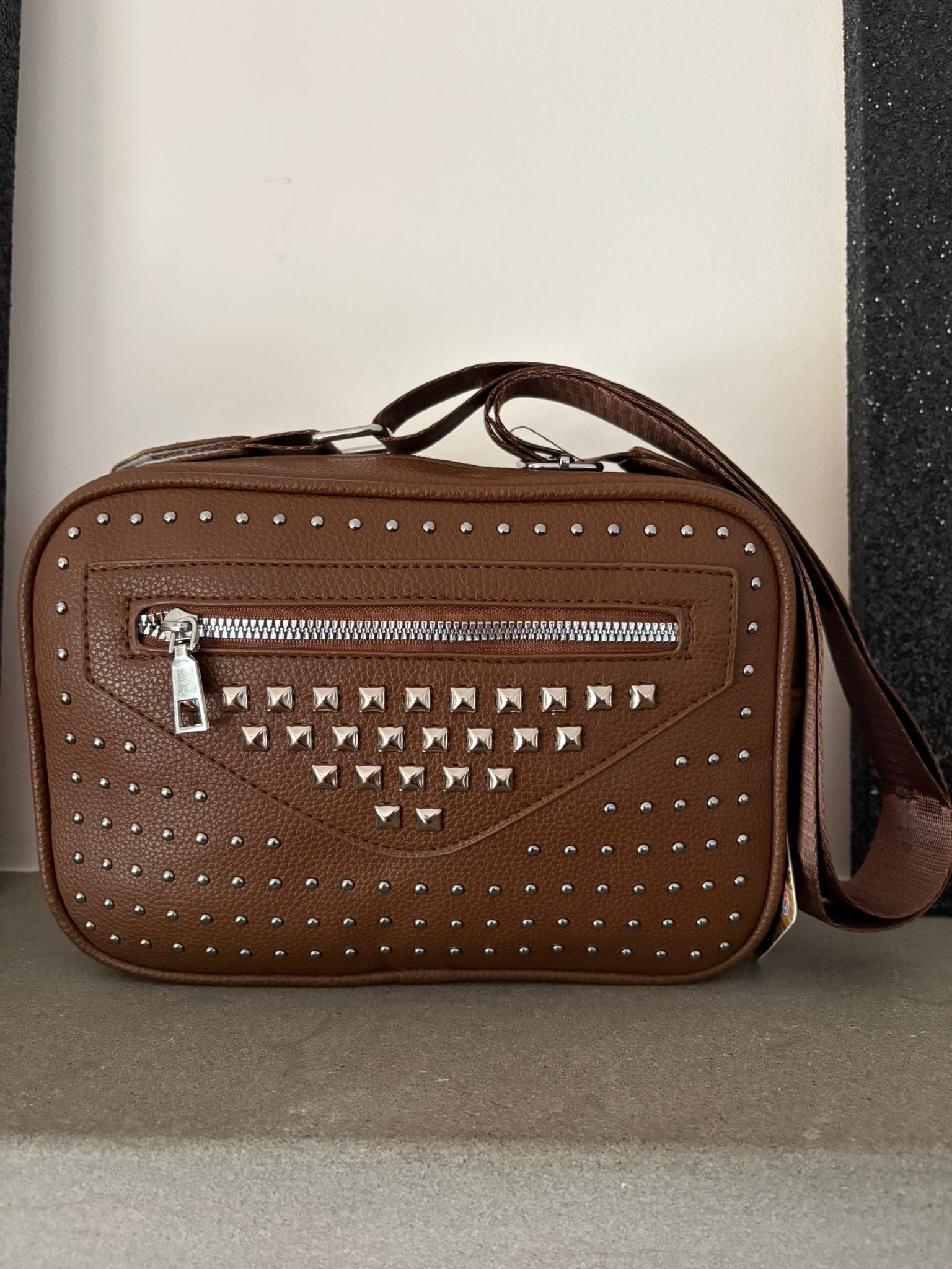 Borsetta tracolla con borchie disponibile nera e brown 25x18cm