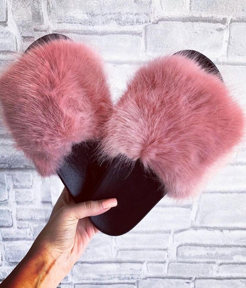 Ciabatta nera interamente in gomma col pelo rosa disponibile dal 36 al 40