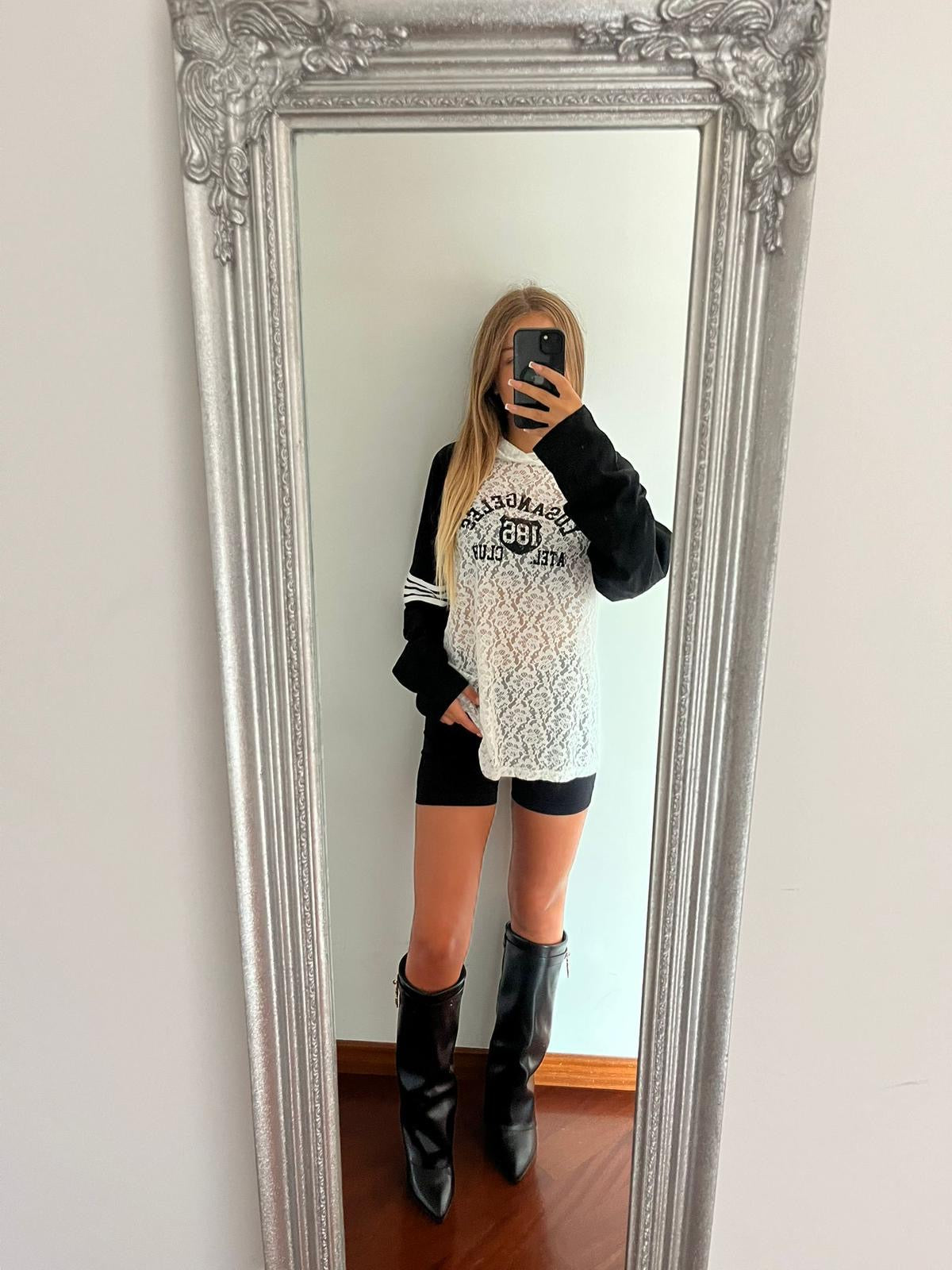 Felpa Los Angeles taglia unica in pizzo con manica in cotone. Vestibilità oversize