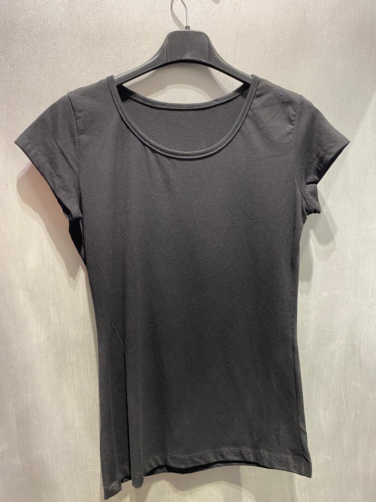 T-shirt slim nera in cotone elasticizzato. Taglia unica