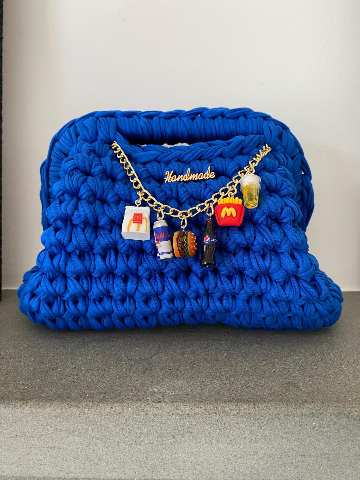 Borsetta fatta a mano 28x20x18cm Blu elettrica con ciondoli