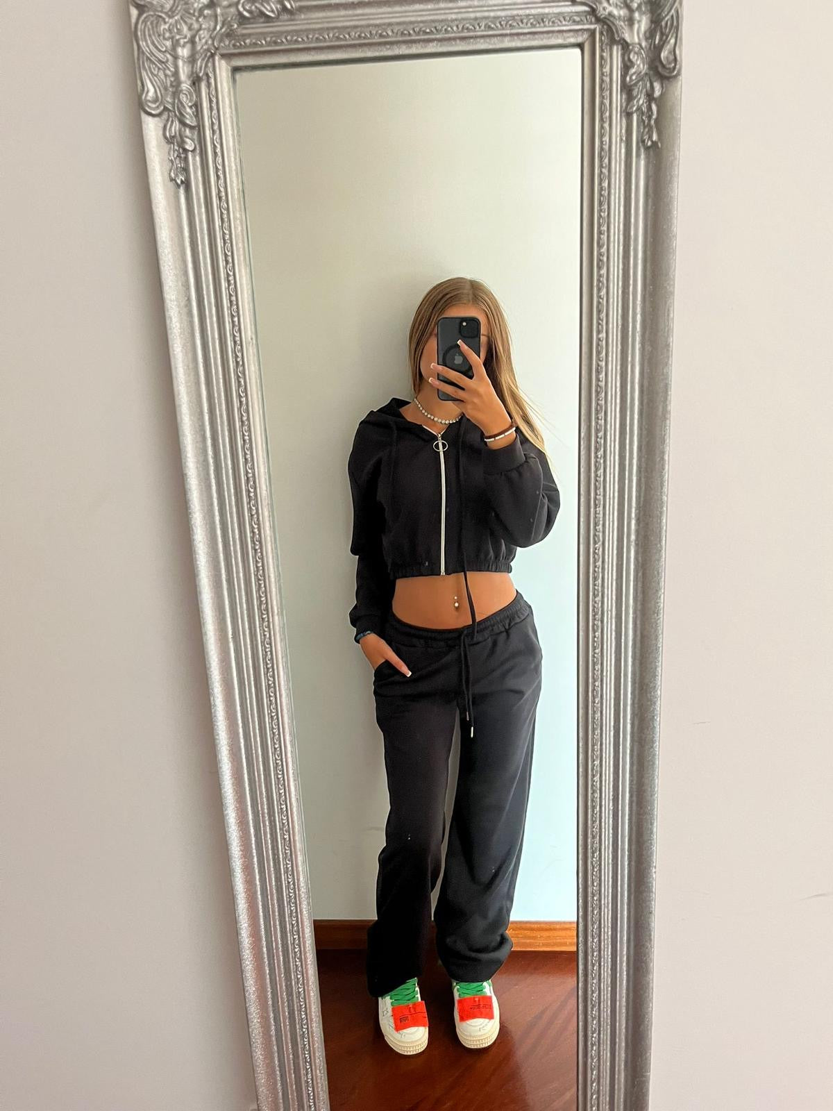 Tuta nera crop. Taglia unica articoli acquistabili separatamente. Felpa crop con cappuccio